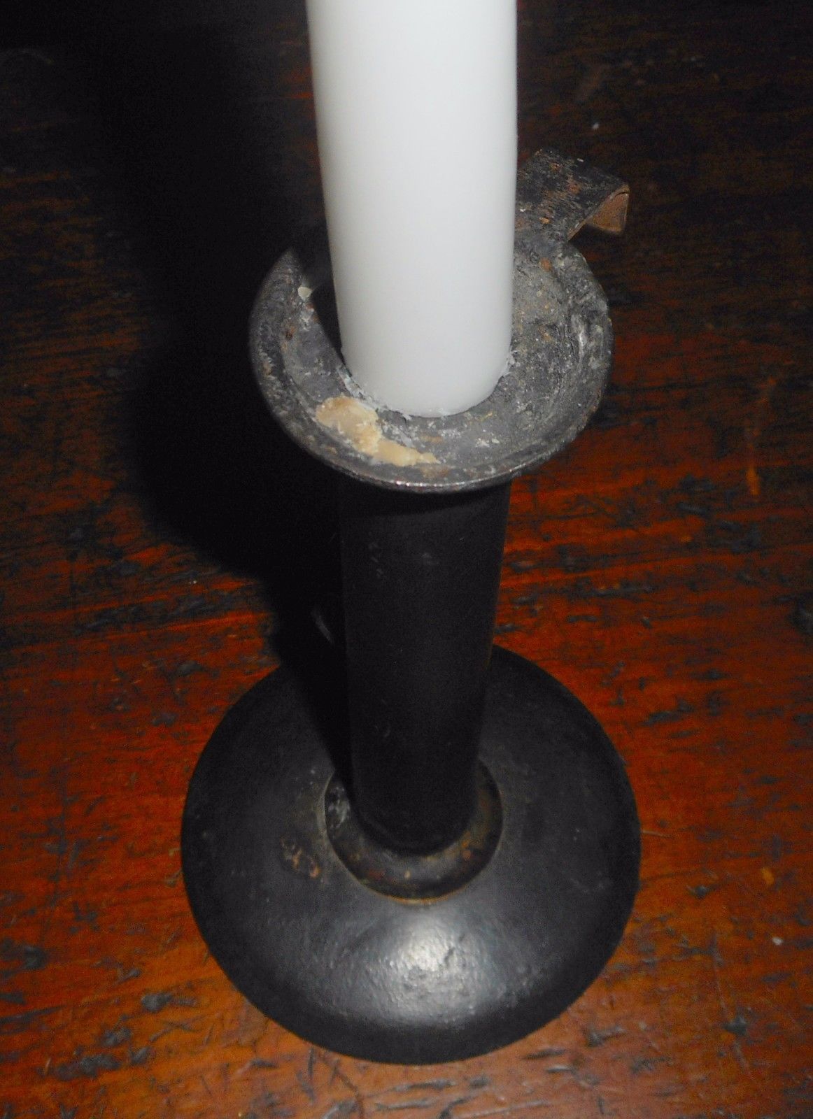 ANTIQUE PRIMITIVE IRON HOG SCRAPER PUSH UP CANDLE HOLDER