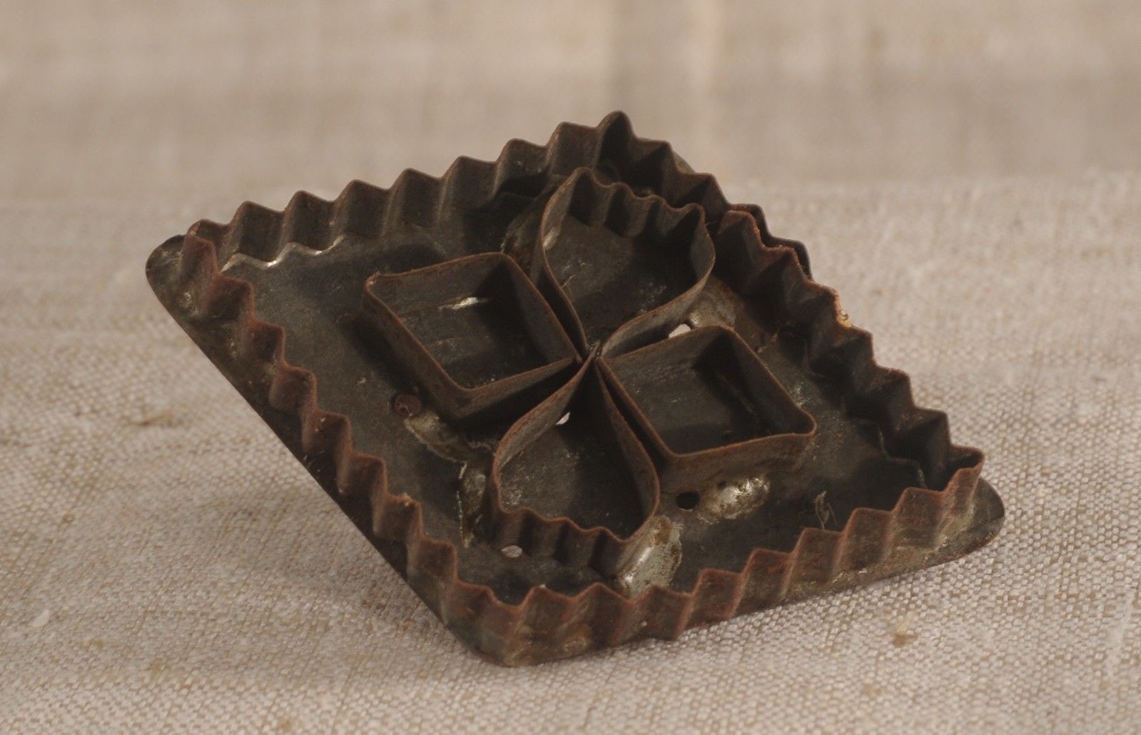 Title (ebay affiliate link): ANTIQUE Primitive Tin Metal Crimped Edge Biscuit & Cookie Cutter with Handle