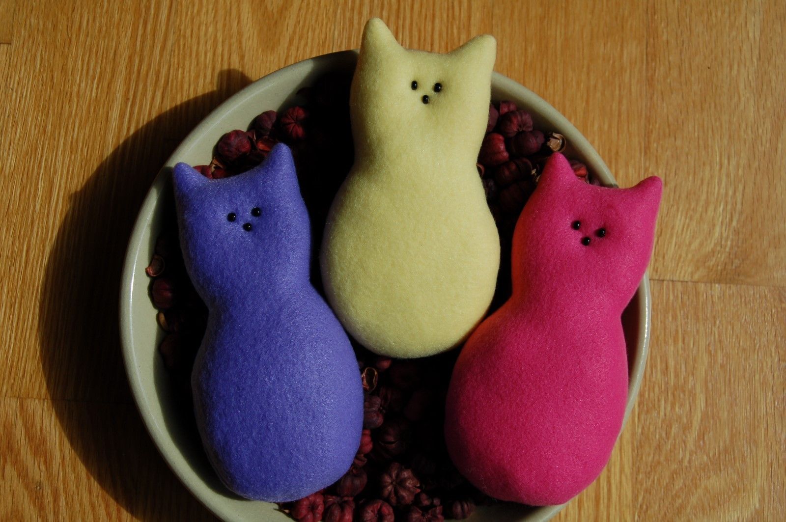 Primitive Easter Marshmallow Cat Ornies, Set of 3