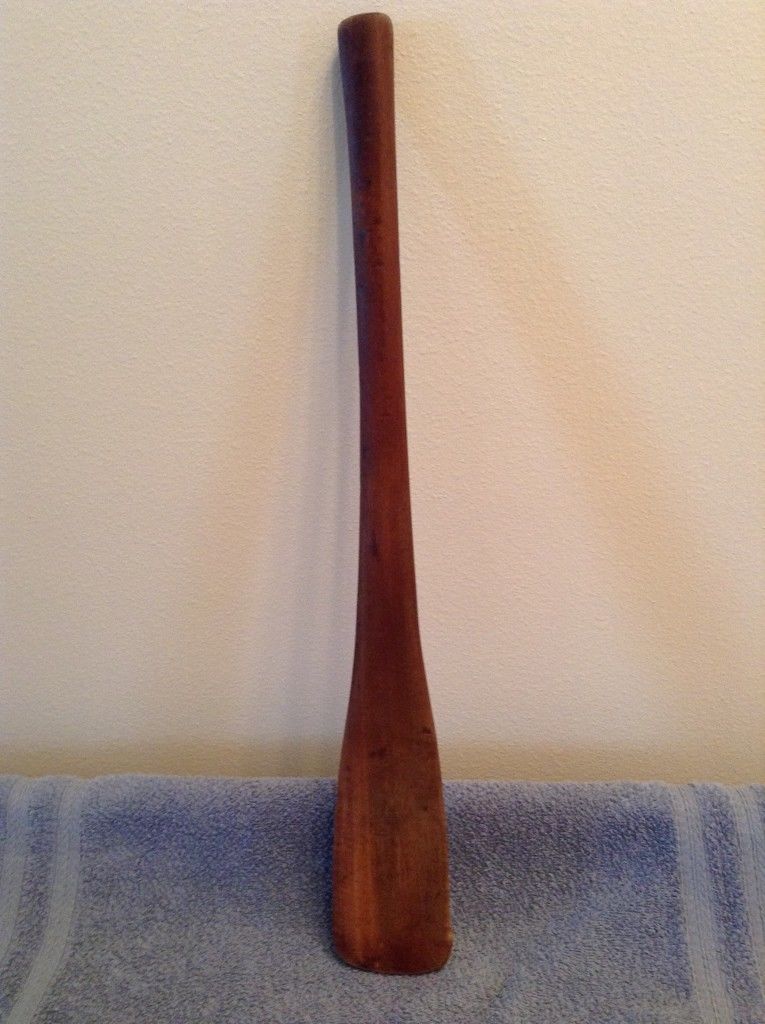 Title (ebay affiliate link): Vintage Wooden Primitive Lard Butter Laundry Paddle Unique Patina 20 1/4" Long