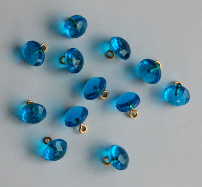 VINTAGE ANTIQUE SMALL GLASS DOLL SHOE BUTTON AQUA 10mm