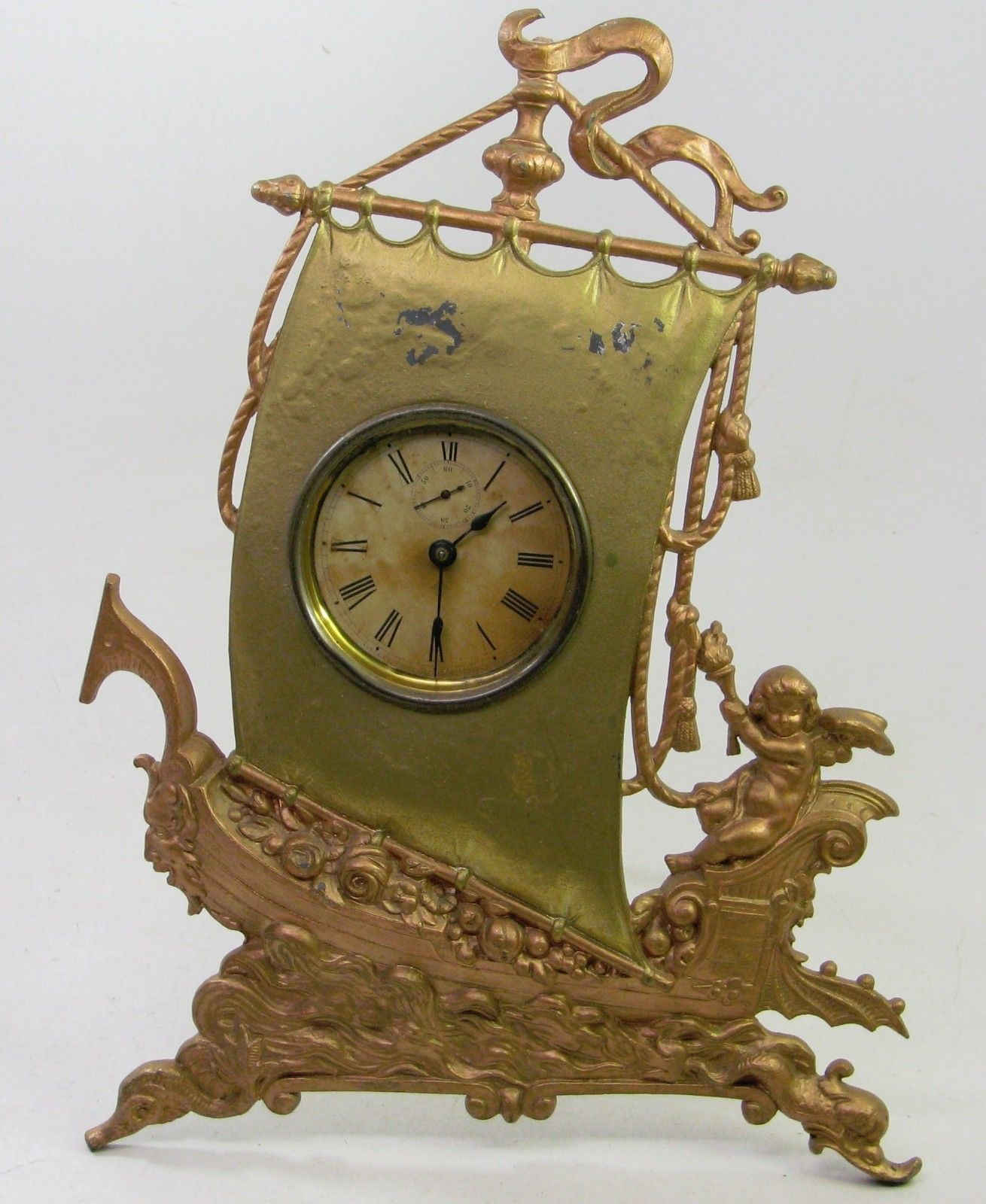 ANTIQUE ANSONIA CAST IRON FIGURAL MANTEL SHELF CLOCK