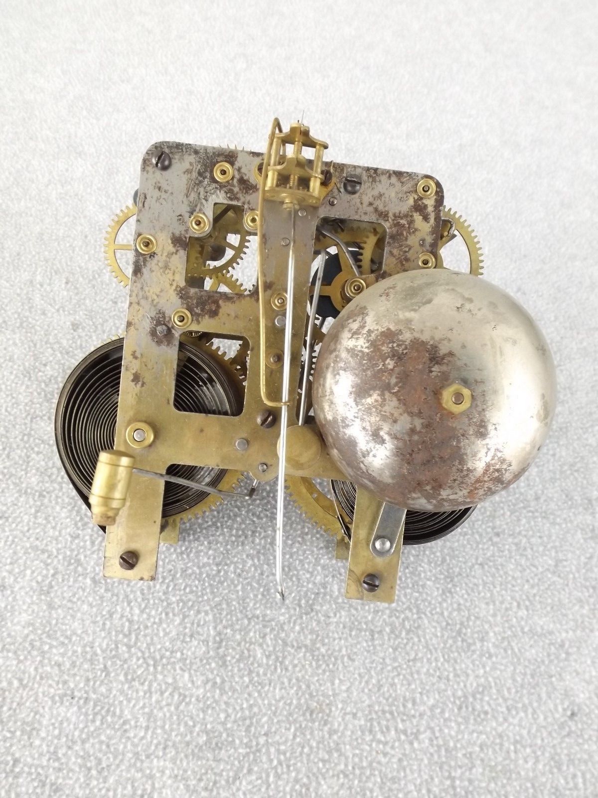 OLD ANTIQUE WATERBURY MANTLE SHELF CLOCK 1/2 HOUR BELL MOVEMENT RE-STORE / PARTS