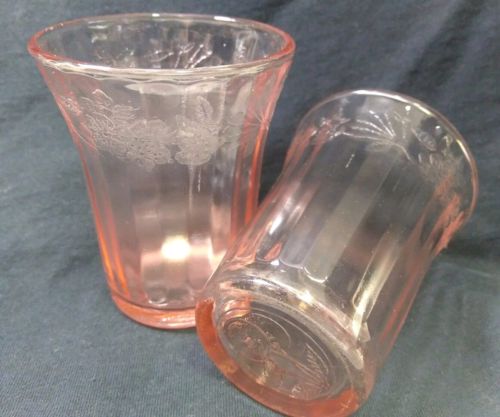Title (ebay affiliate link): Vintage Pink Cherry Blossom Depression Glass Flat Juice Tumblers set of two