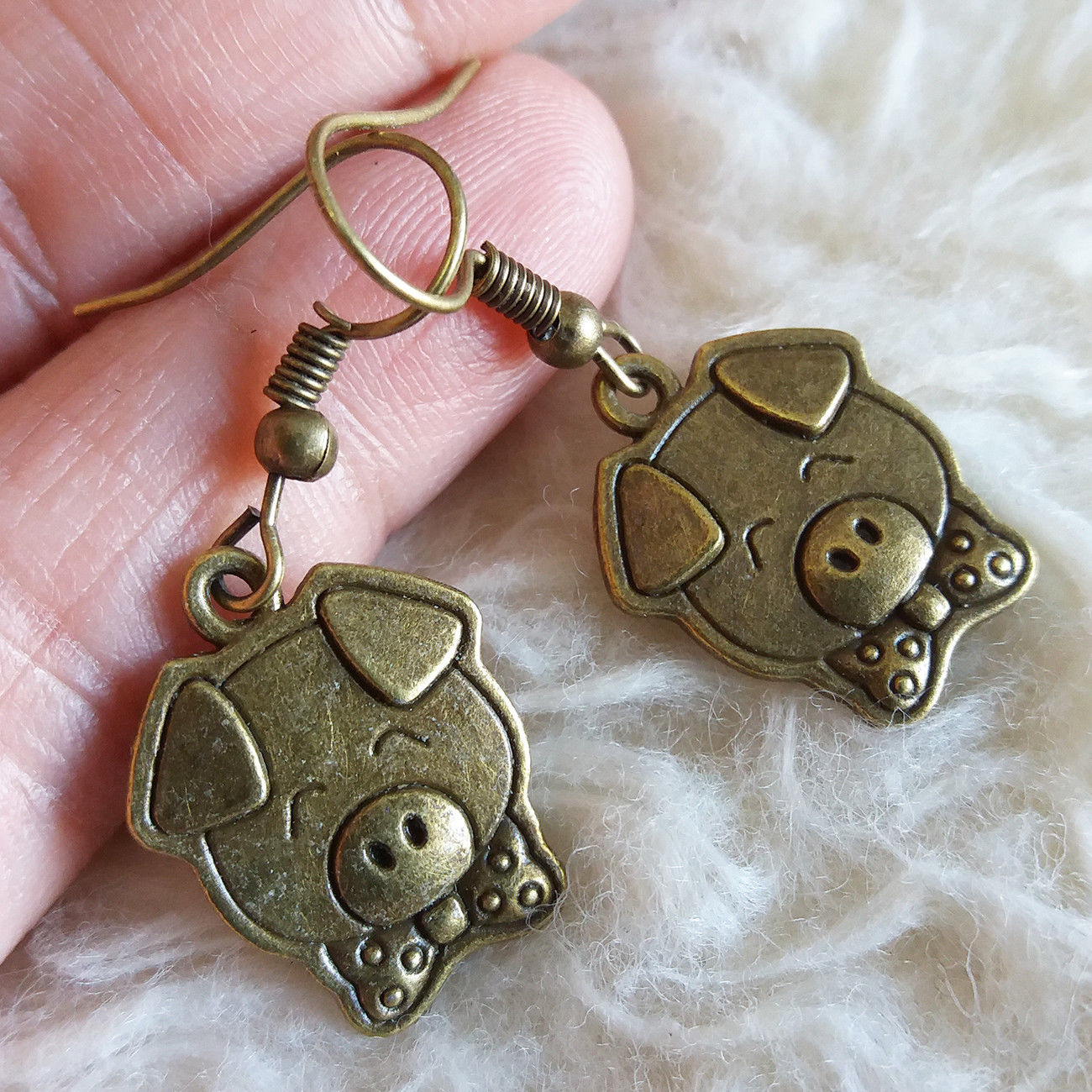 Title (ebay affiliate link): Cute Lovely Womens Ladies Antique-Tone Metal Pig Chandelier Dangle Hook Earrings