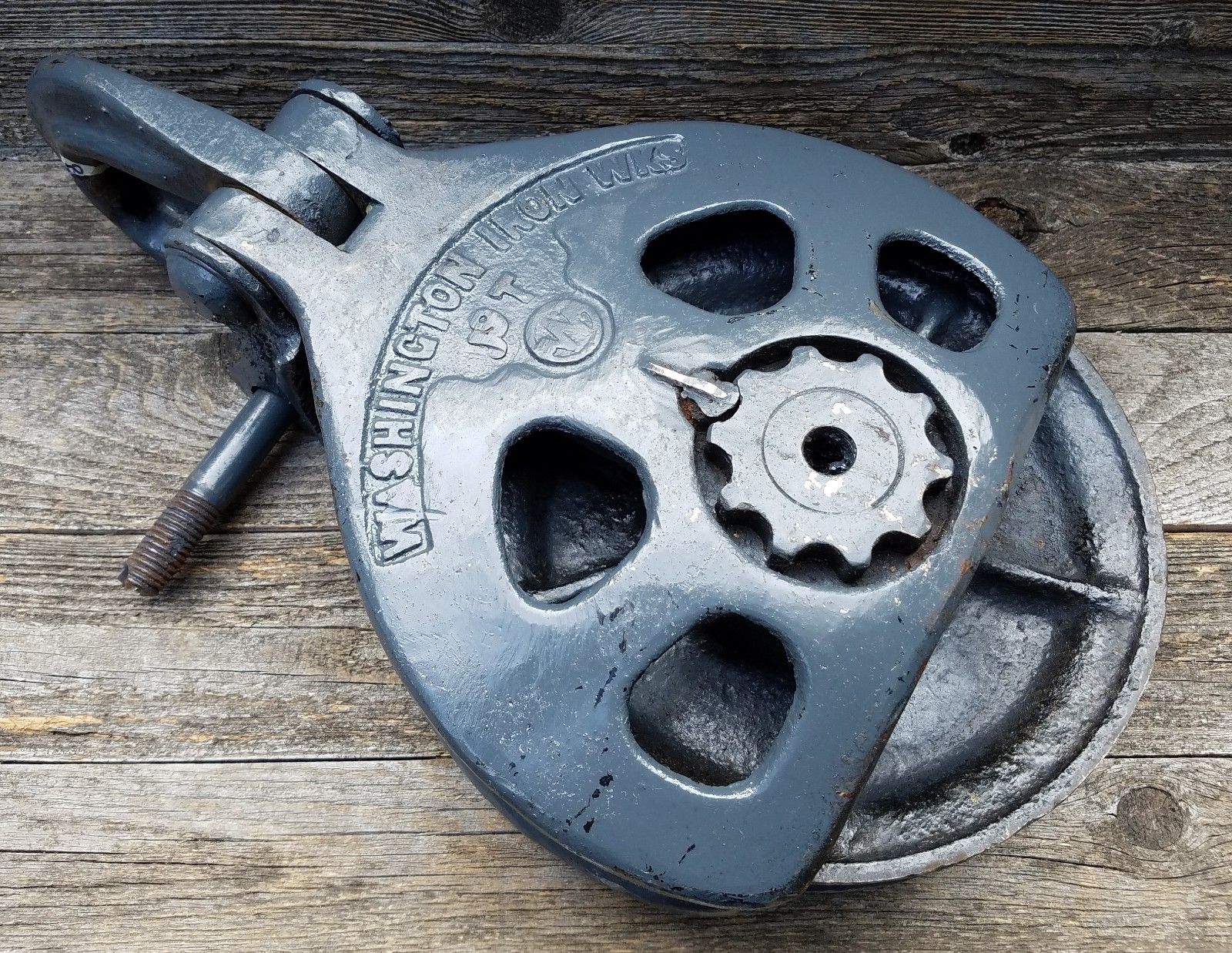 Title (ebay affiliate link): Vintage Washington Iron Works Pulley - Big Metal Block & Tackle Logging Hoist
