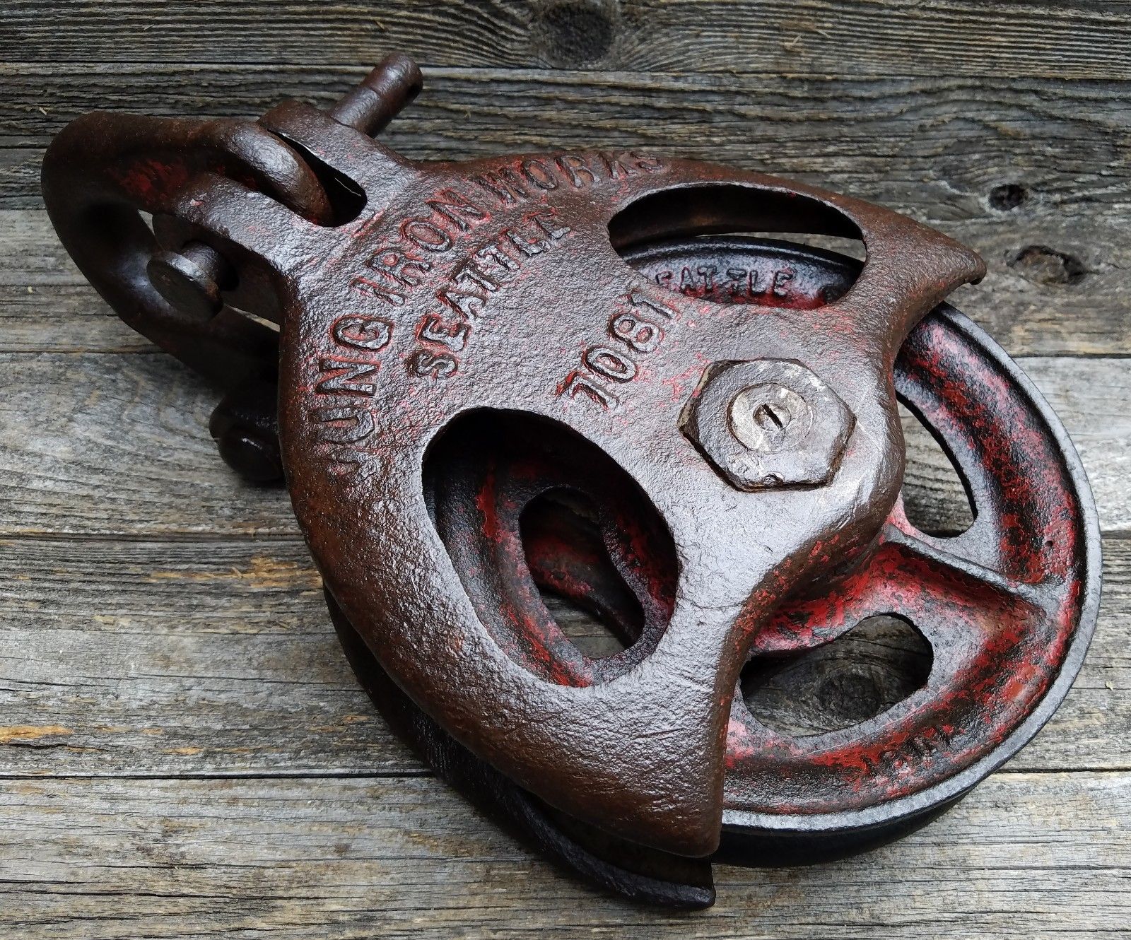 Title (ebay affiliate link): Vintage Young Iron Works 7081 Seattle Snatch Block & Tackle Logging Hoist Pulley