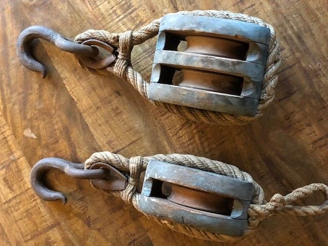 Title (ebay affiliate link): Two Early Antique Wooden Block & Tackle Barn Pulleys one Single and one Double