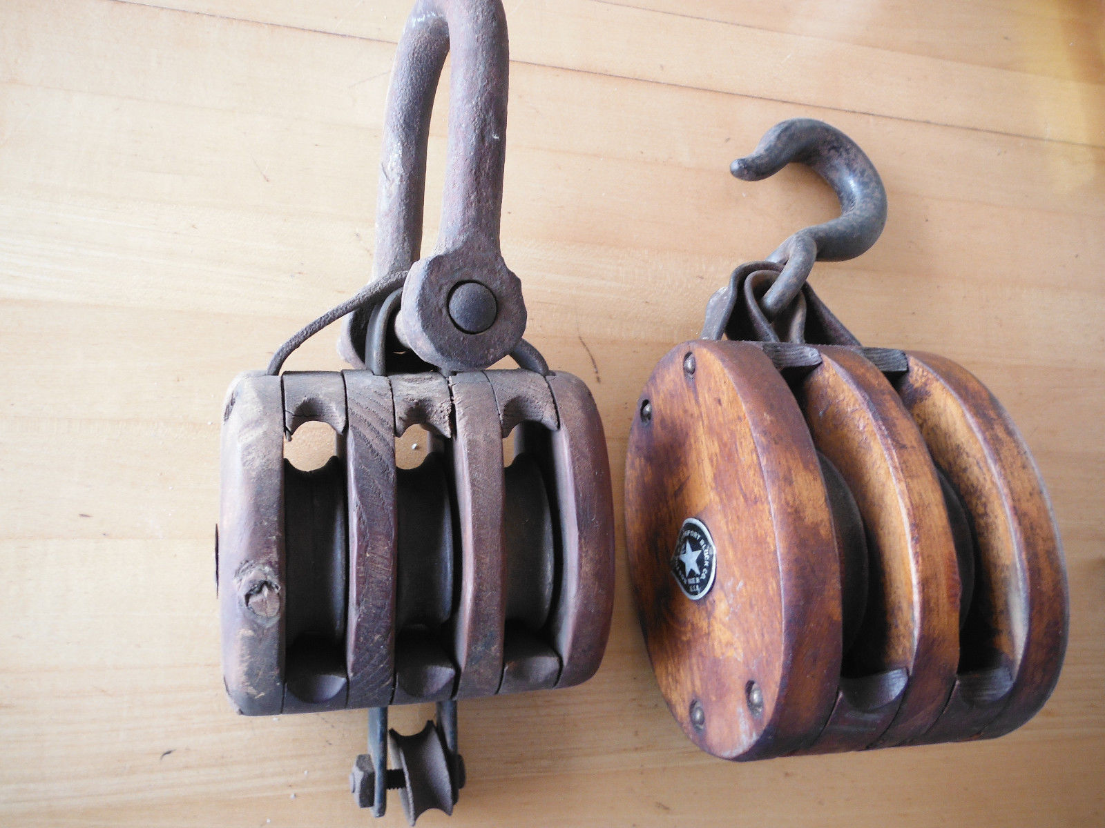Title (ebay affiliate link): 2 Antique Boston & Lockport Block Co Pulley and ANVIL logo Pulley