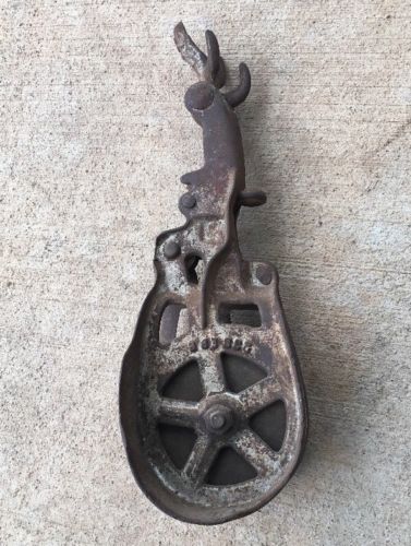 Title (ebay affiliate link): Antique Vintage Cast Iron Barn Pulley wooden wheel Farm Rustic Hook Hay loft