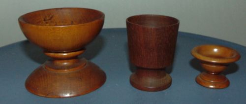 Title (ebay affiliate link): THREE! ANTIQUE PRIMITIVE Miniature TREENWARE Wooden CARVED Pieces