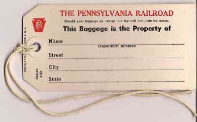 PENNSYLVANIA RAILROAD BAGGAGE TAG