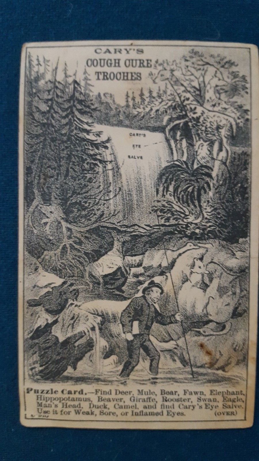 Title (ebay affiliate link): VINTAGE TRADE CARD - PUZZLE CARD - CARY''S FAMILY MEDICINE COUGH CURE