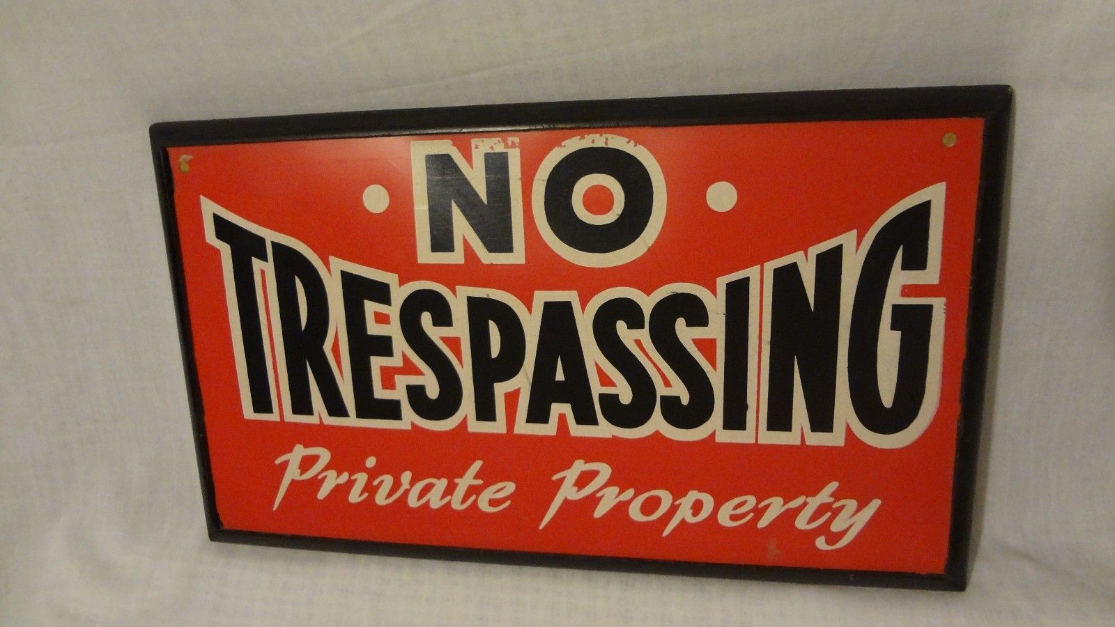 Title (ebay affiliate link): Vintage Wood Backed "NO TRESPASSING Private Property" Sign/Plaque