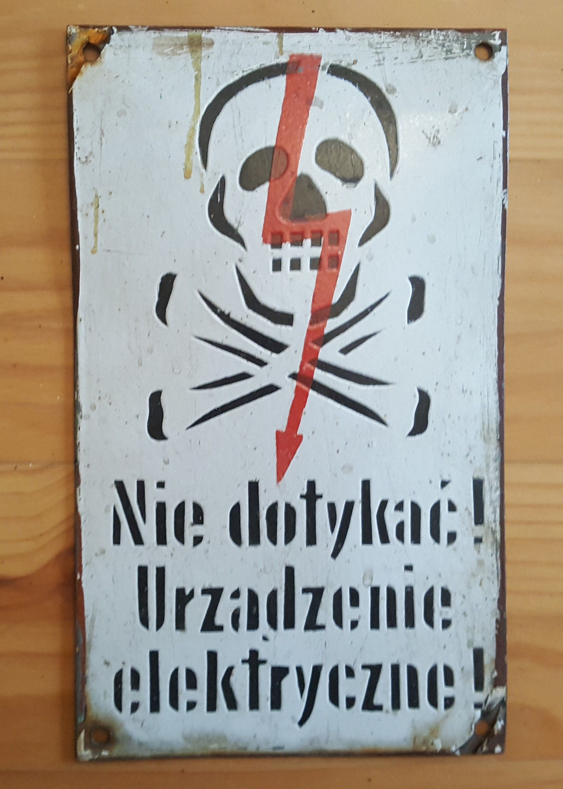 ORIGINAL VINTAGE ANTIQUE PORCELAIN ENAMEL DANGER SIGN SKULL