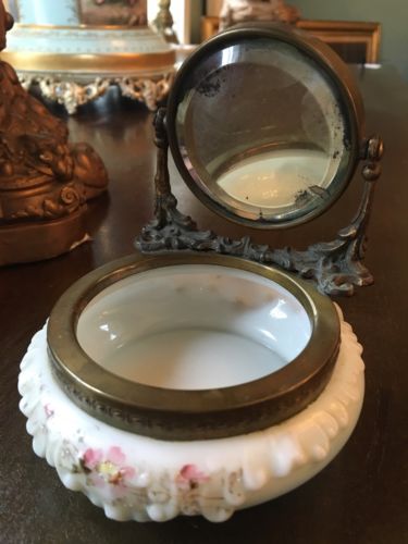 Antique Wavecrest Glass Open Dresser Box with Swivel Mirror
