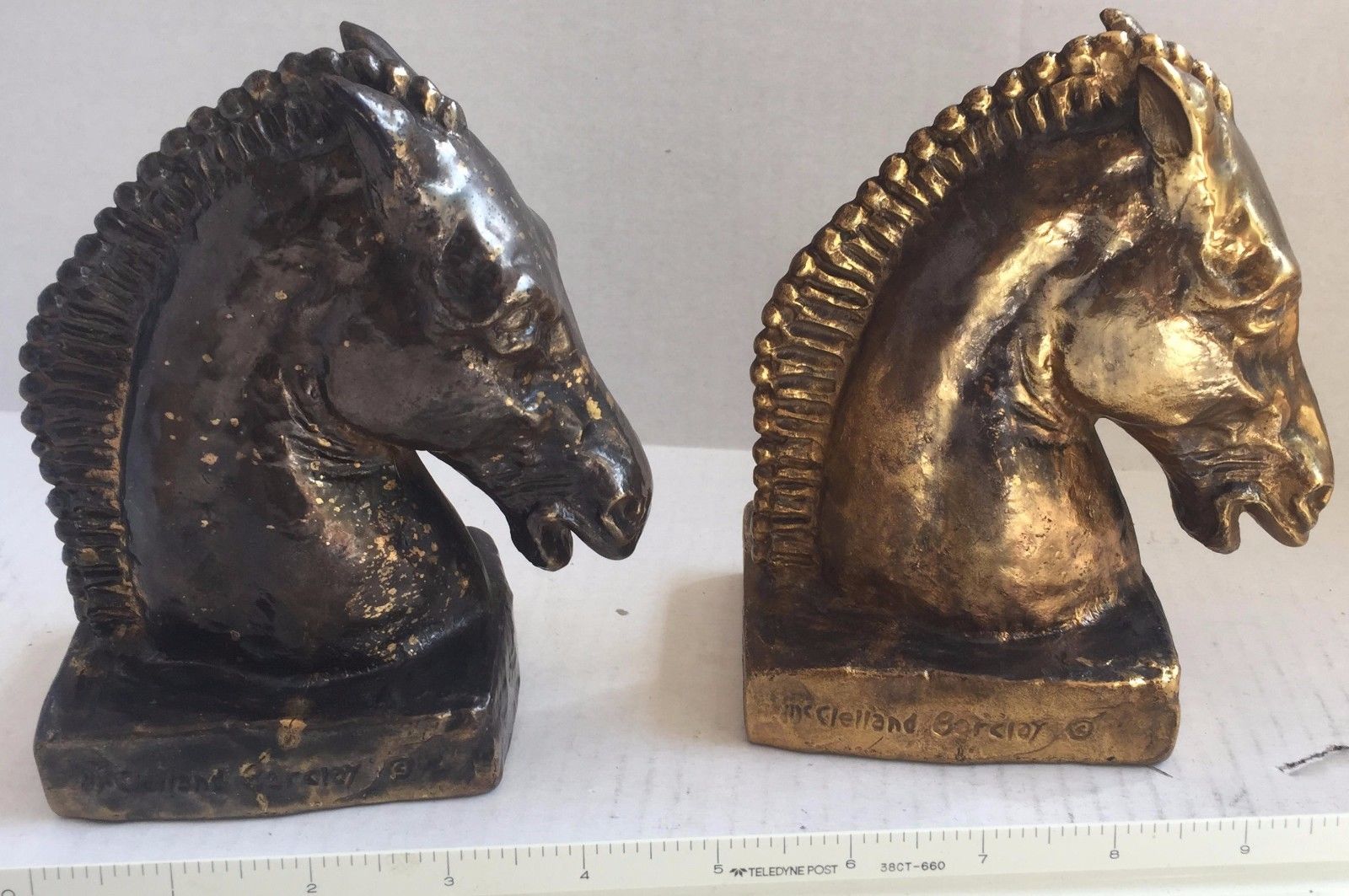 Antique Signed McClelland Barclay Art Deco Bronze finish Horse Bust bookends