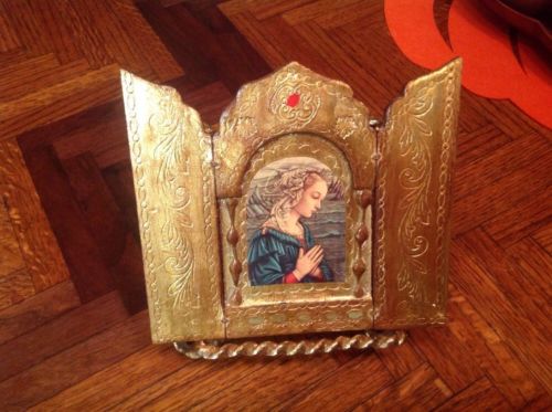 TRIPTYCH ICON ALTAR WOODEN GOLD GILT FLORENTINE With Stand