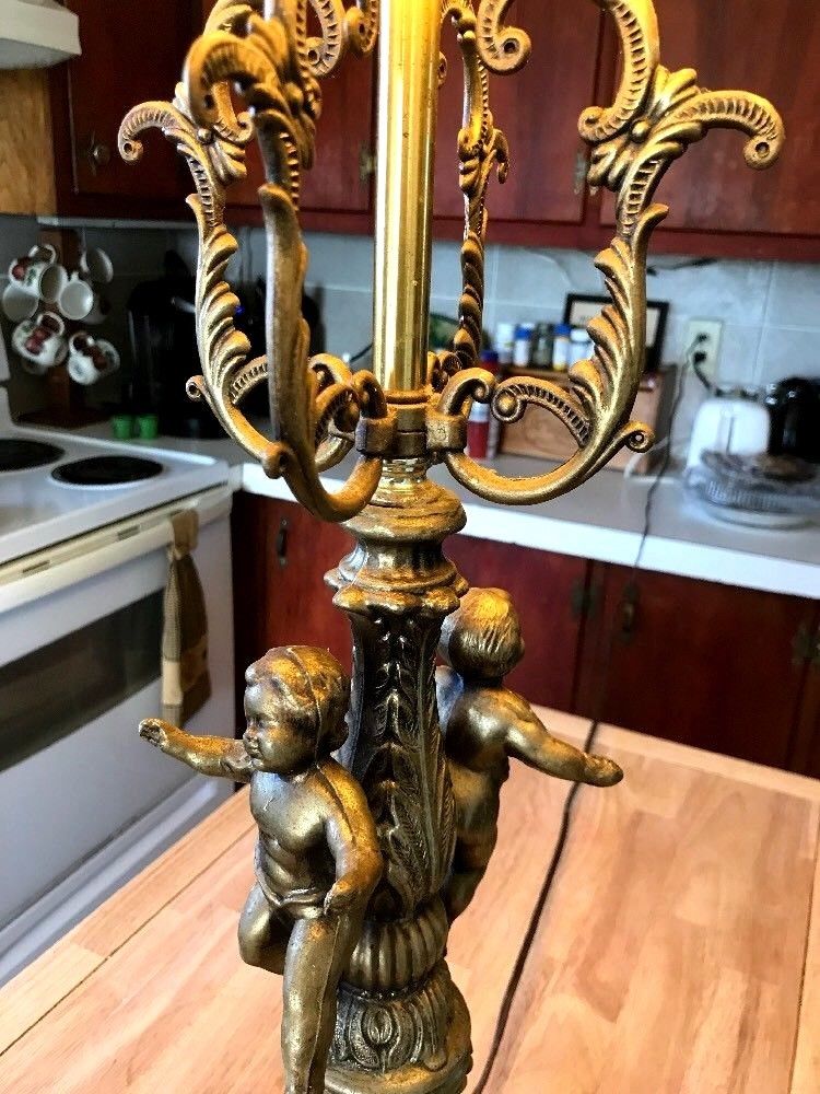 Title (ebay affiliate link): Vtg-lovely Cupid Cherub Tall Gold Brass Elec. Table Lamp-ornate beautiful base