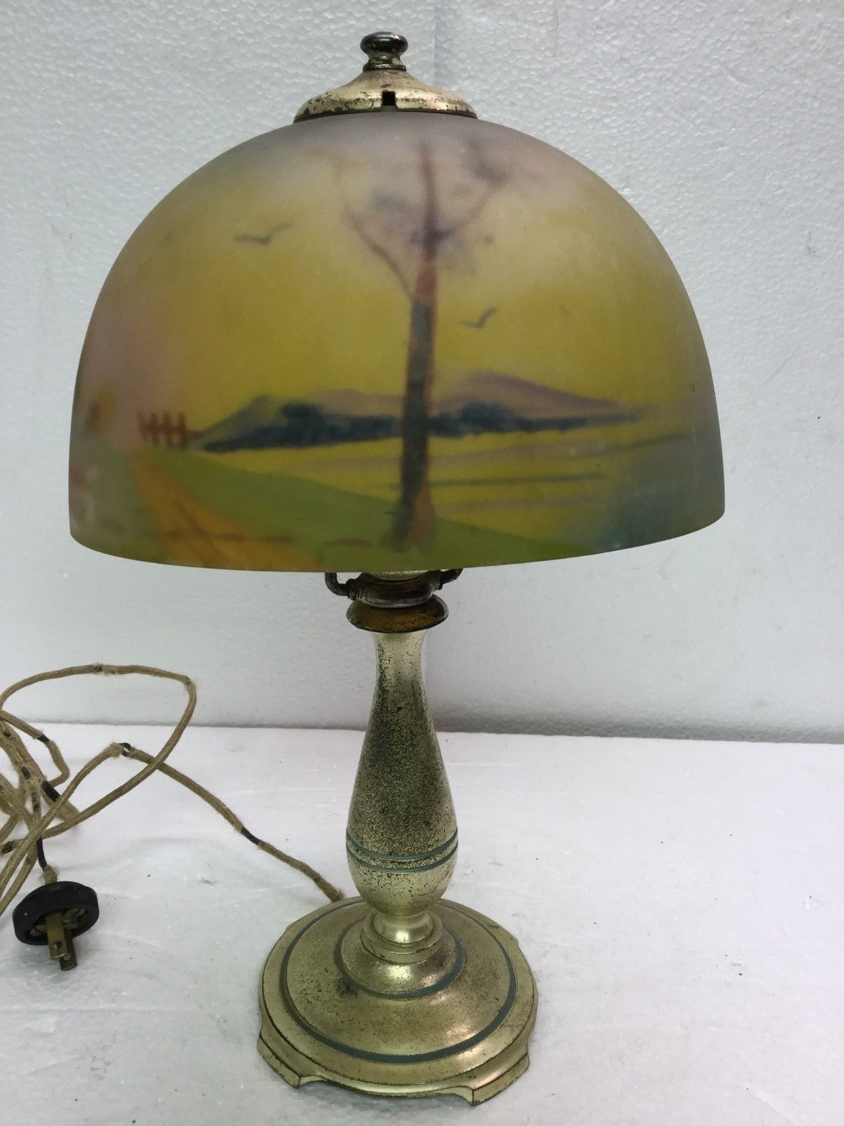 Title (ebay affiliate link): 1920s Moe Bridges Boudoir Lamp Base With Reverse Painted 8" Glass Shade- Handel?