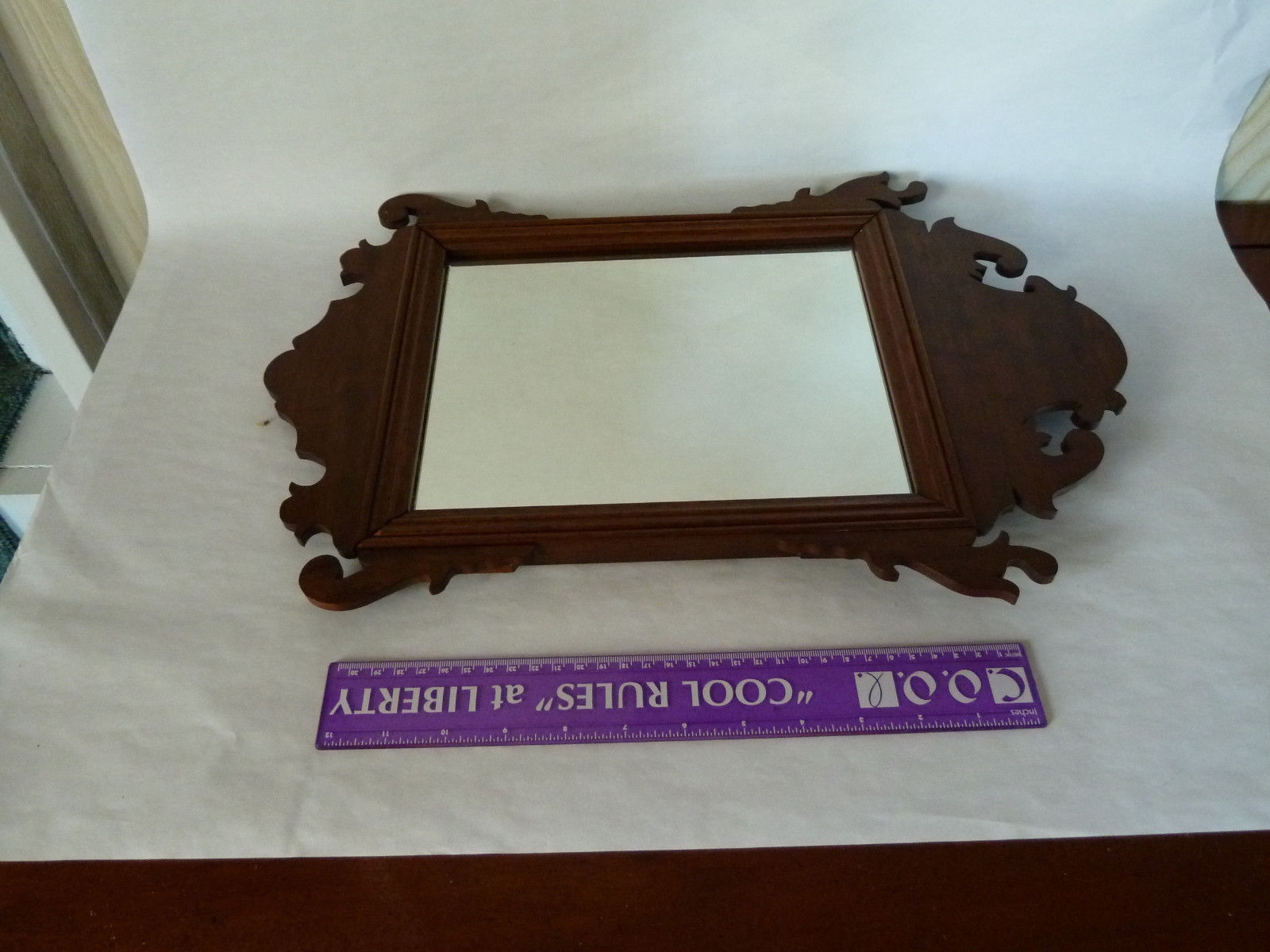 Vintage Chippendale style small wall mirror probably mahogany