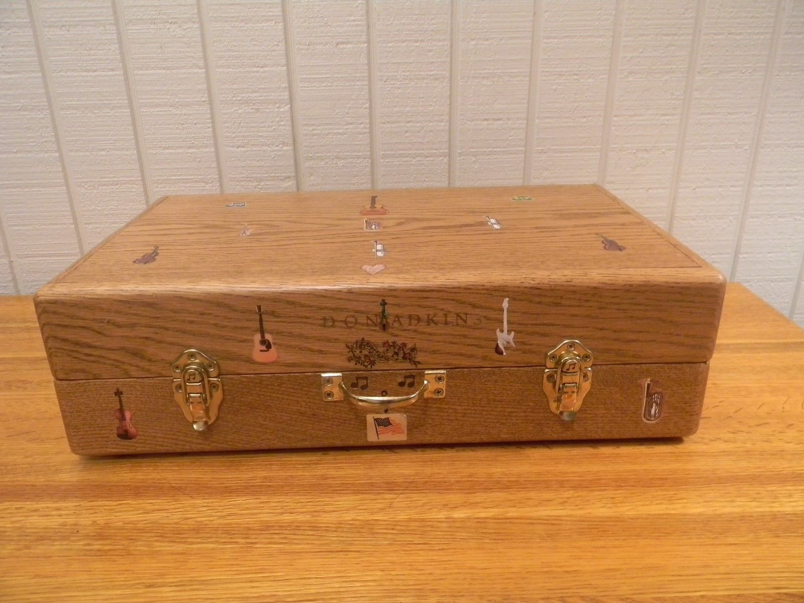 Title (ebay affiliate link): Hand Crafted Solid Oak Carrying Case With Brass Handle, Latches & Hinges