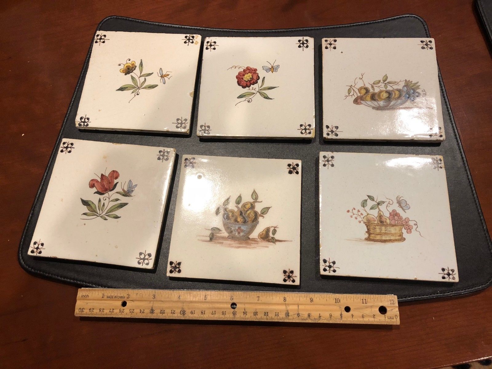 lot of 6 Dutch Delft tile with a beautiful polychrome flower.