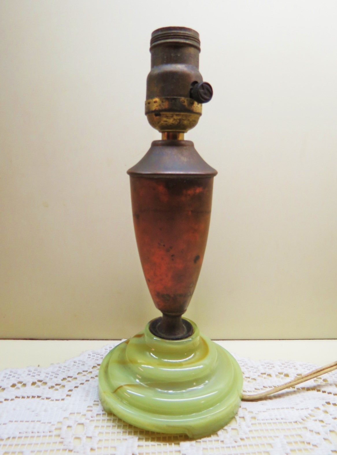 Title (ebay affiliate link): Vintage Depression Table Lamp HOUZE Jade Green Slag Glass Base Works, Glows