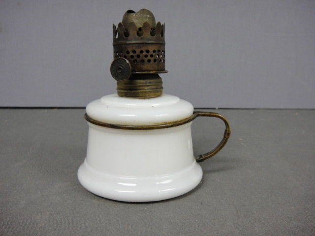VINTAGE WHITE MILK GLASS NUTMEG FINGER OIL LAMP