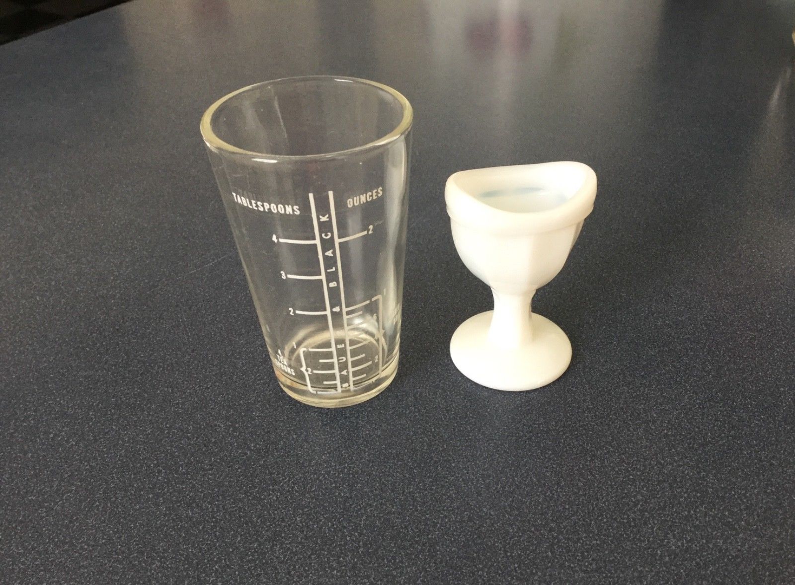 Title (ebay affiliate link): Vintage medicine Black & Bauer measuring glass and milk glass eye rinse cup