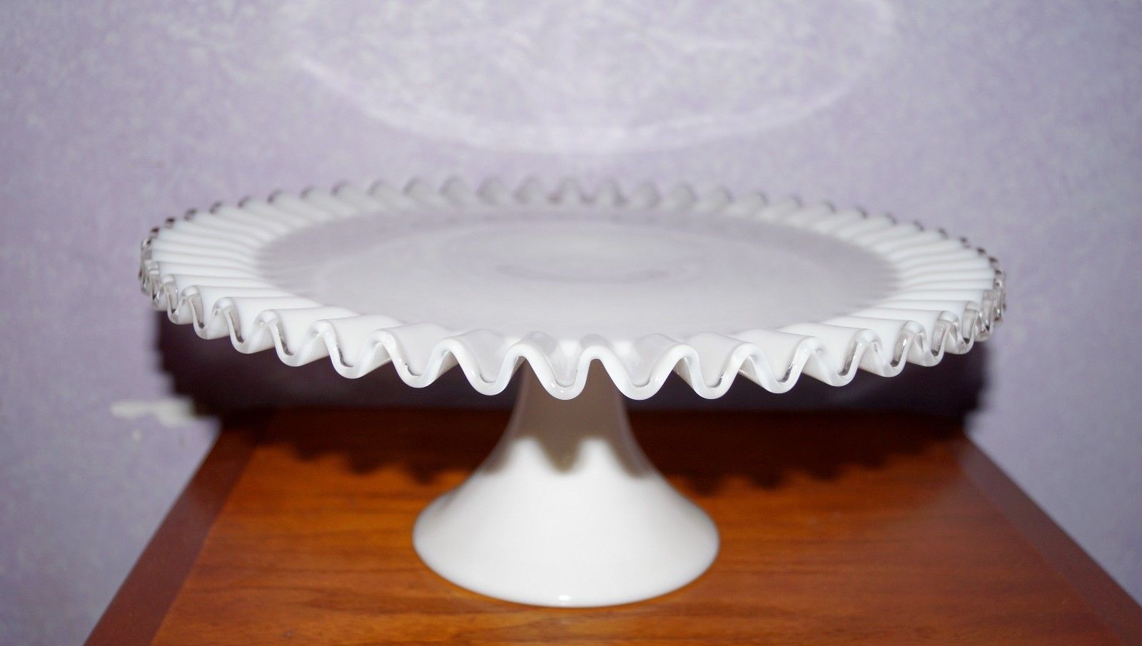 Title (ebay affiliate link): Vintage Fenton Silver Crest White Milkglass 13" x 5 1/2" Footed Cake plate 1960s