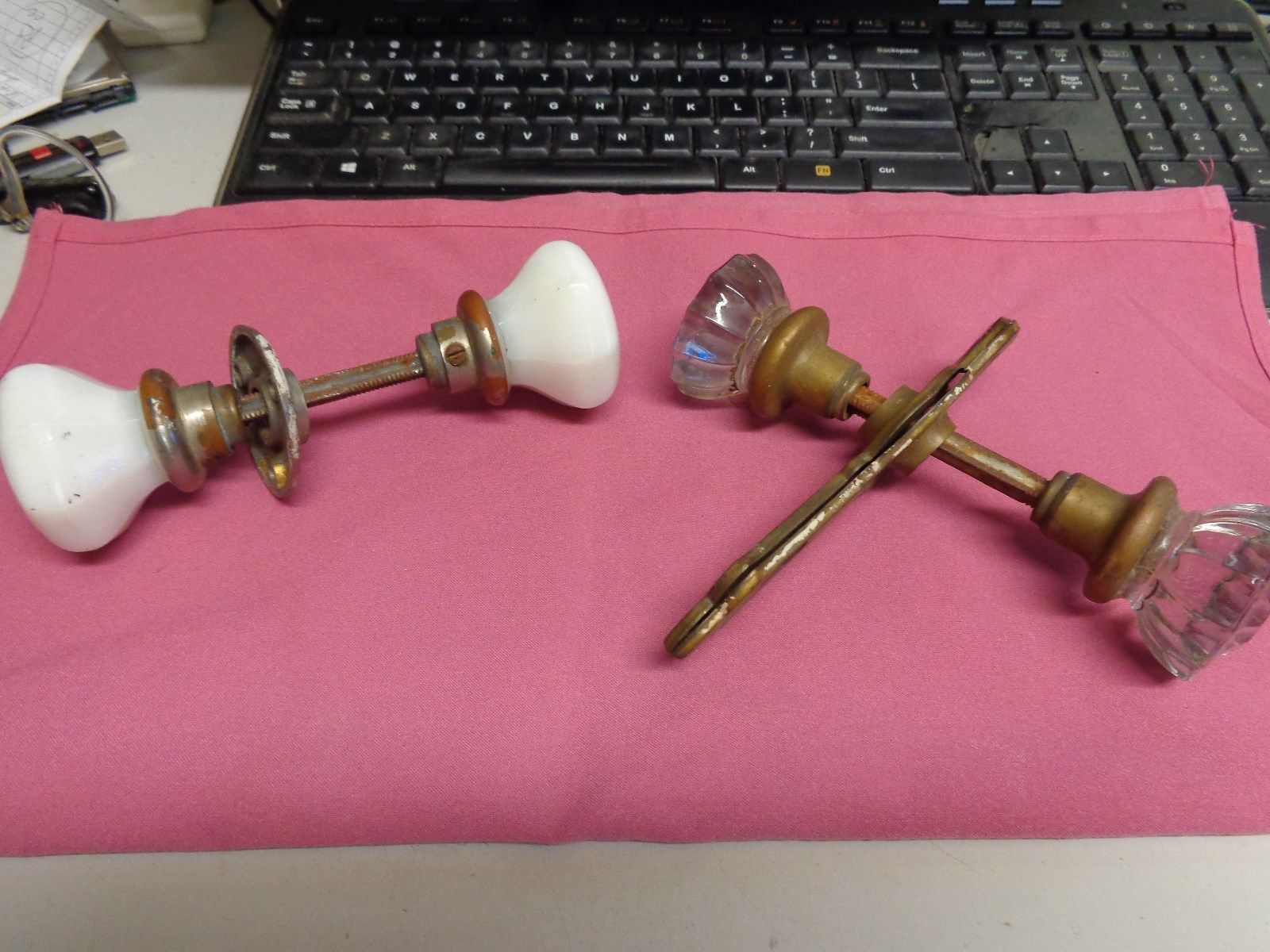 Vintage Old Milk Glass and Glass Antique Door Knobs