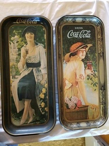 Title (ebay affiliate link): Drink Coca-Cola Serving Tin Trays Gibson Girl Drink trays 8.5" X 19"