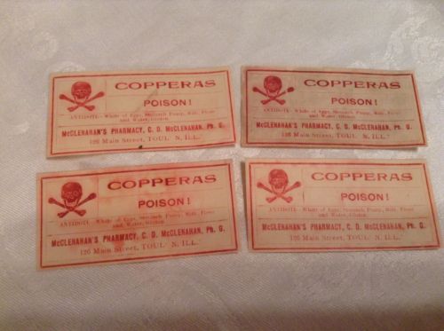 Title (ebay affiliate link): Lot Of 4 Antique Original Skull And Crossbones Poison Labels Medicine Toulon Ill