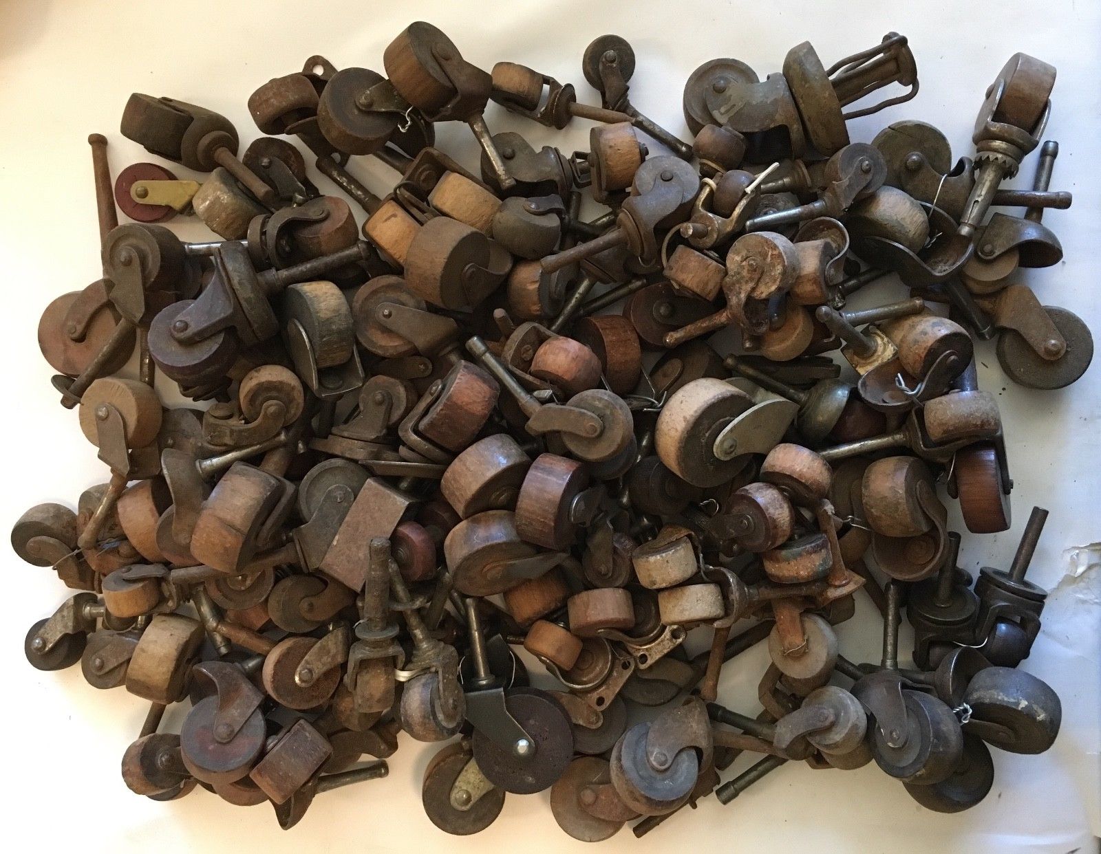 Title (ebay affiliate link): Large Lot of 149 Misc. Antique Wood Casters (19.5 lbs)