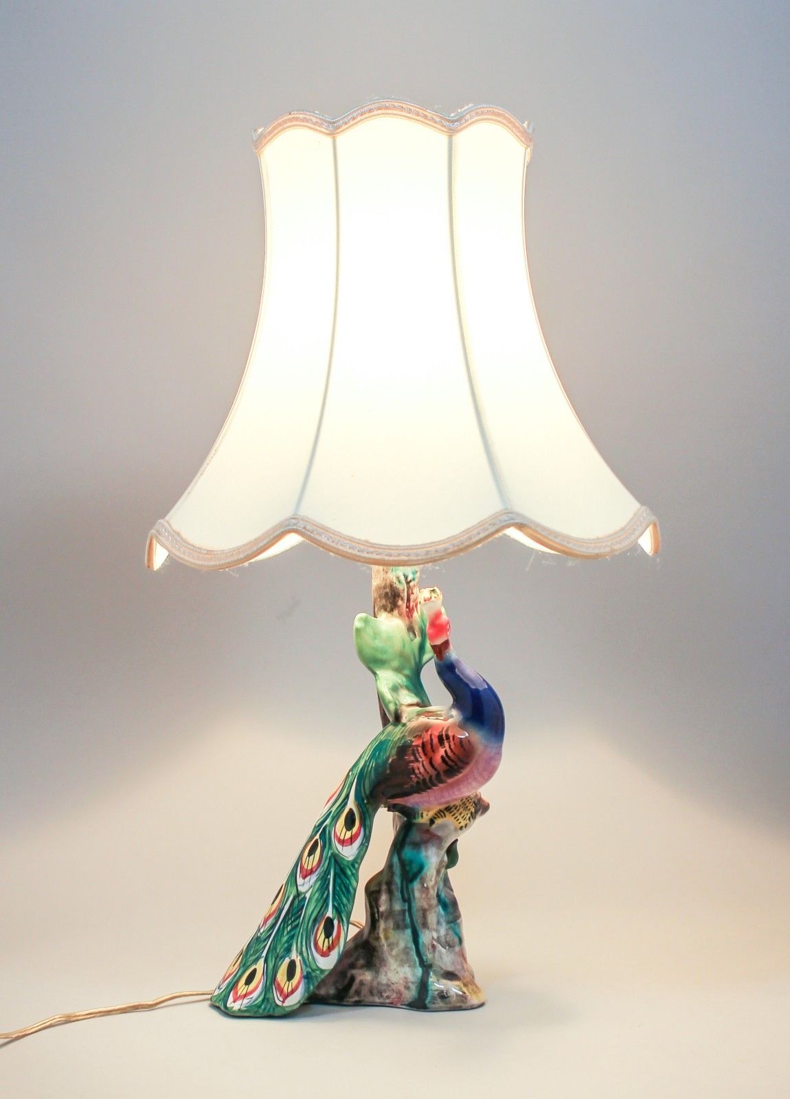 Title (ebay affiliate link): Vintage Italian majolica ceramic peacock figurine lamp 1960s retro pottery