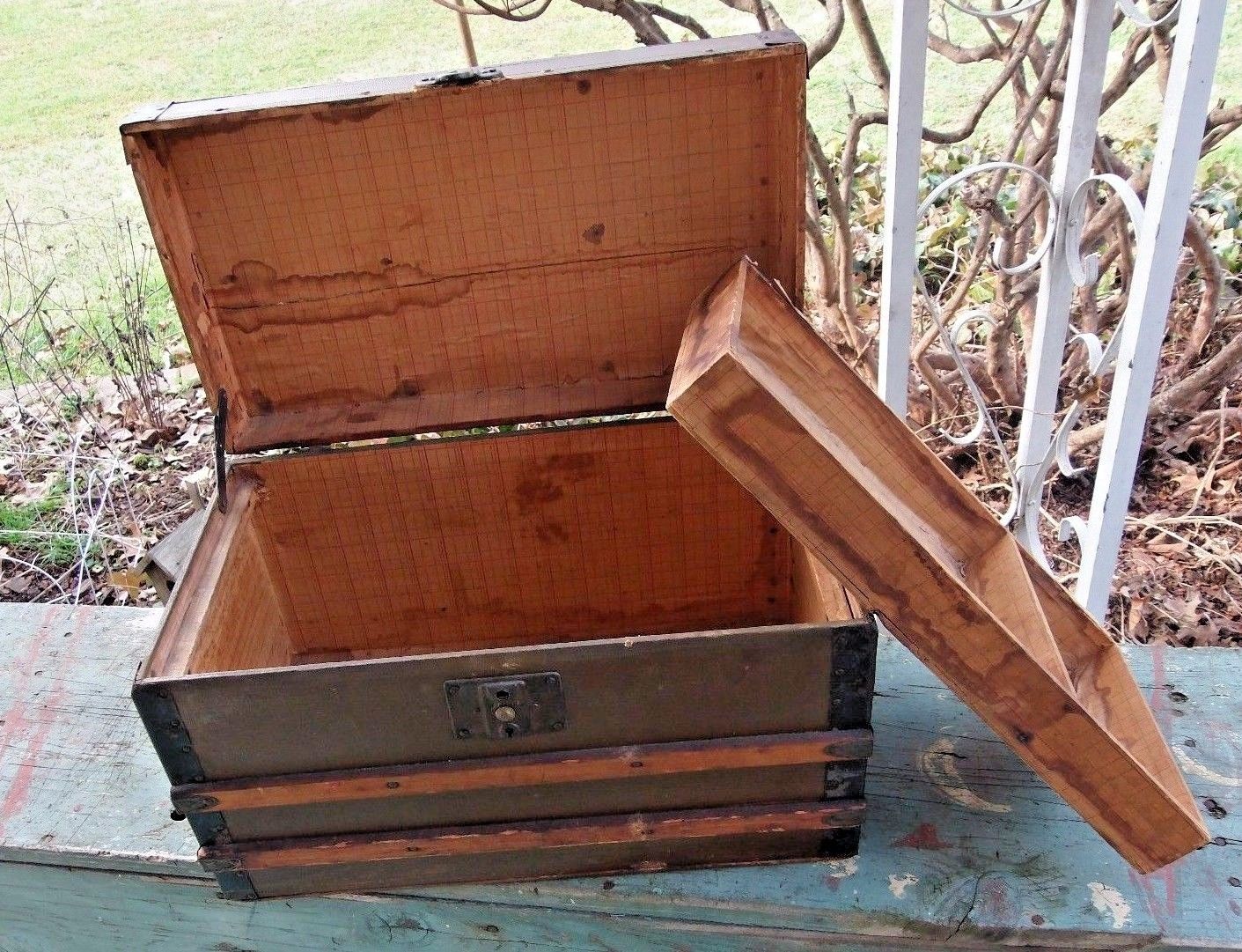 Title (ebay affiliate link): Vintage 18" FLAT TOP STEAMER TRUNK doll child w/ tray wood Antique box chest old