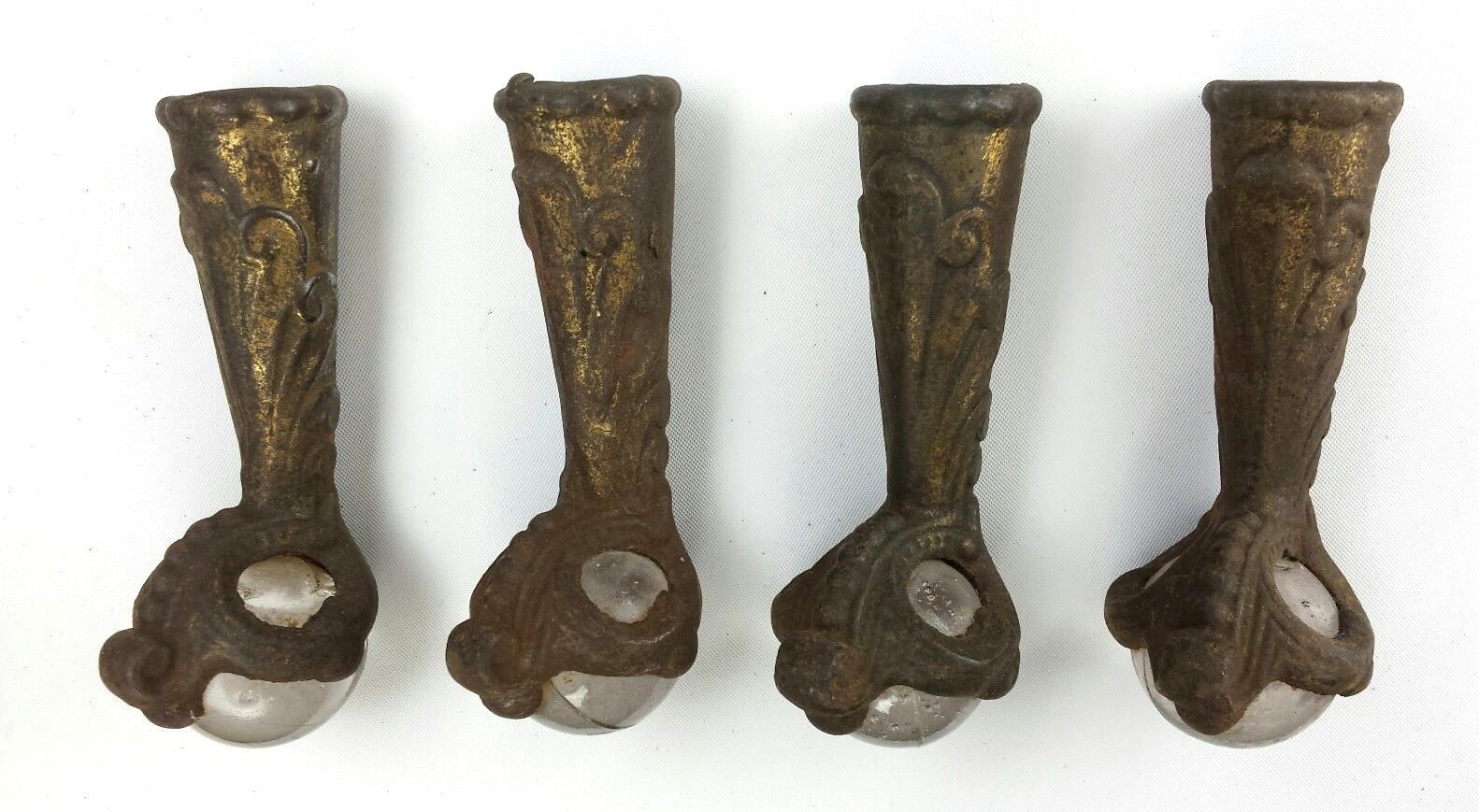 Antique Set of (4) Glass Ball & Claw Feet for Table Furniture