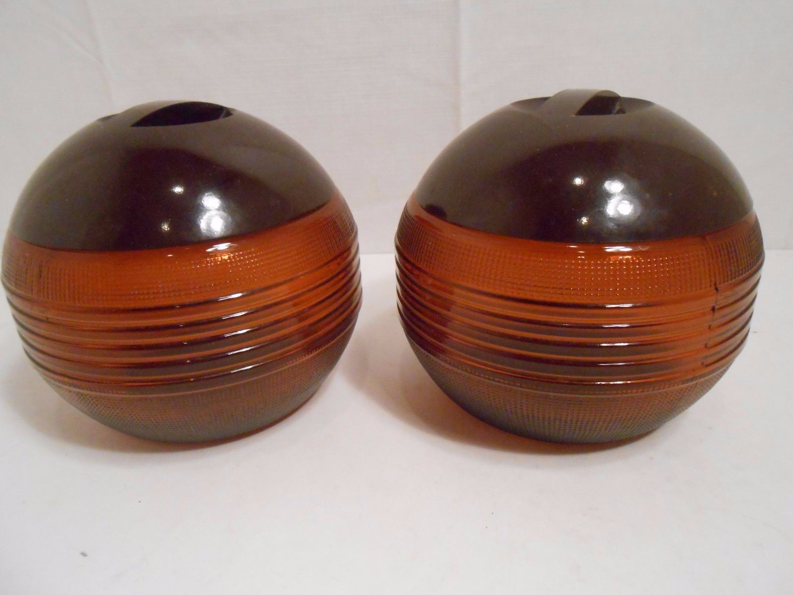 Pair Vintage Art Deco Glass Jars with lids BROWN