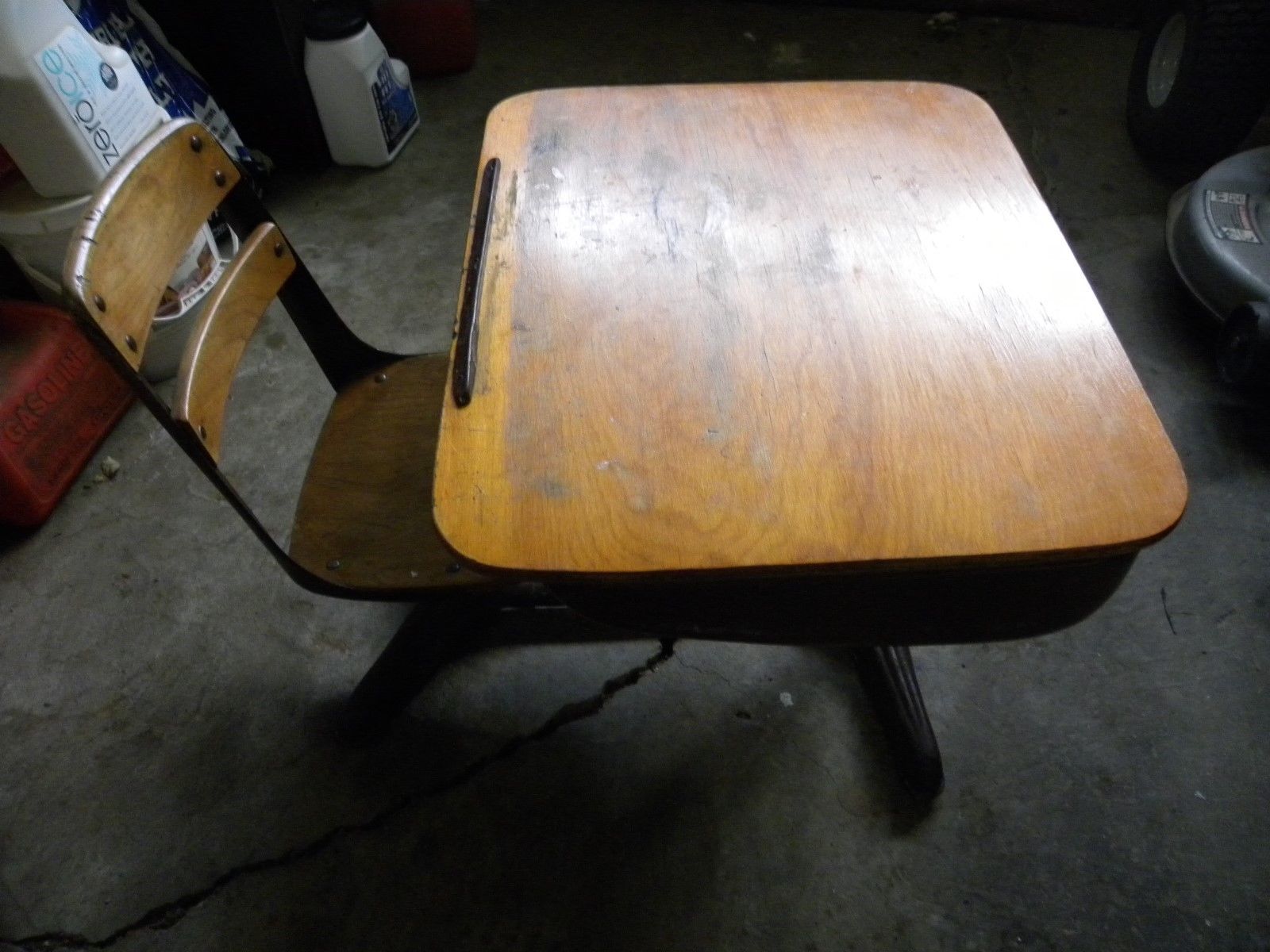 Title (ebay affiliate link): VINTAGE CHILDS SCHOOL DESK--Very Good Condition--Wood W/ Metal Legs--One Piece