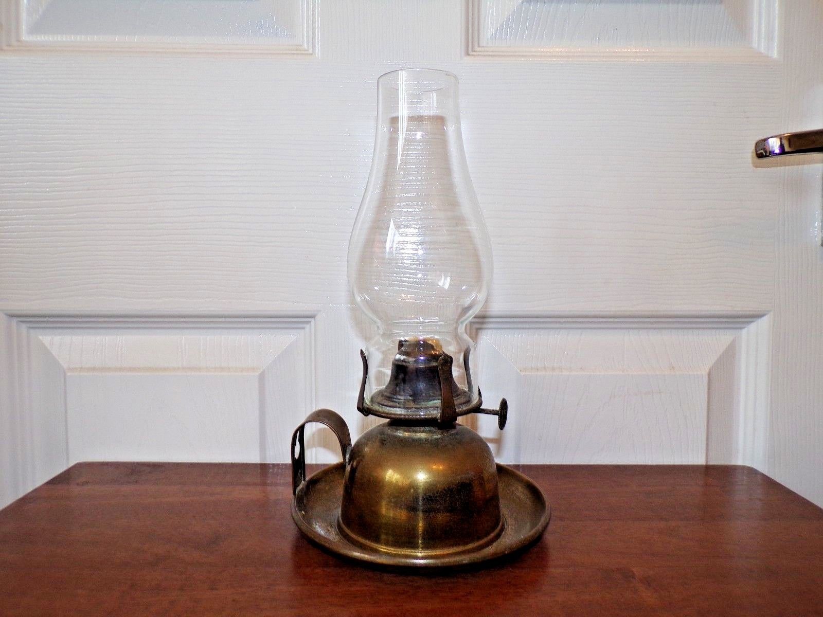 Title (ebay affiliate link): Vintage Brass finger Oil Lamp With Glass Chimney go to bed working order veritas