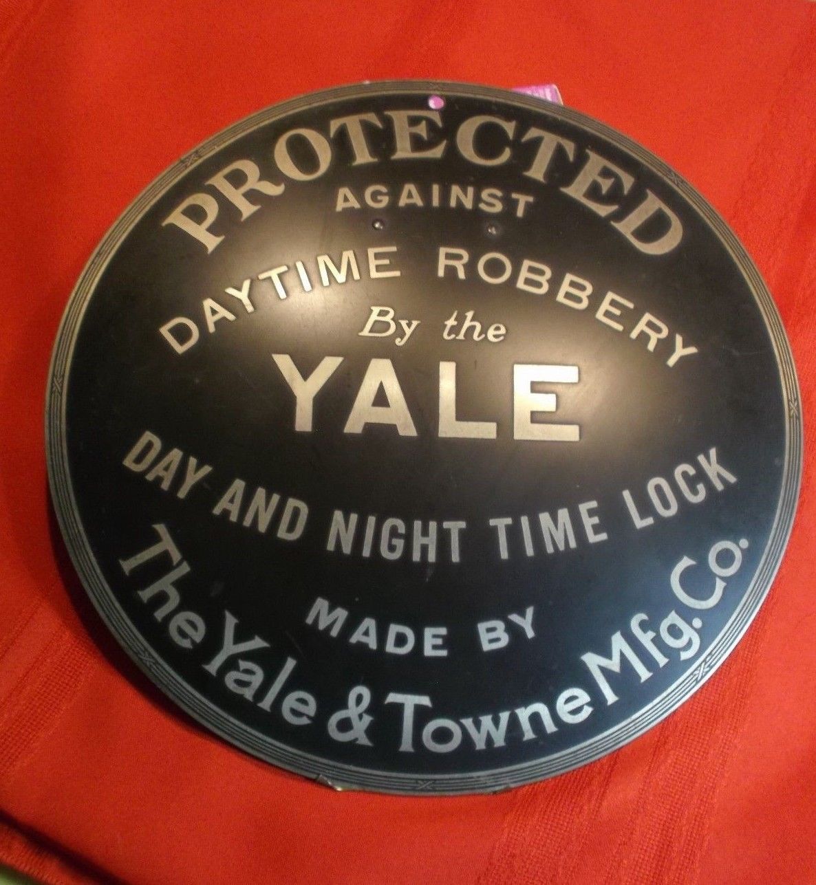 Title (ebay affiliate link): Yale & Towne Mfg. Company advertising sign for day/night lock - 12.5" diameter