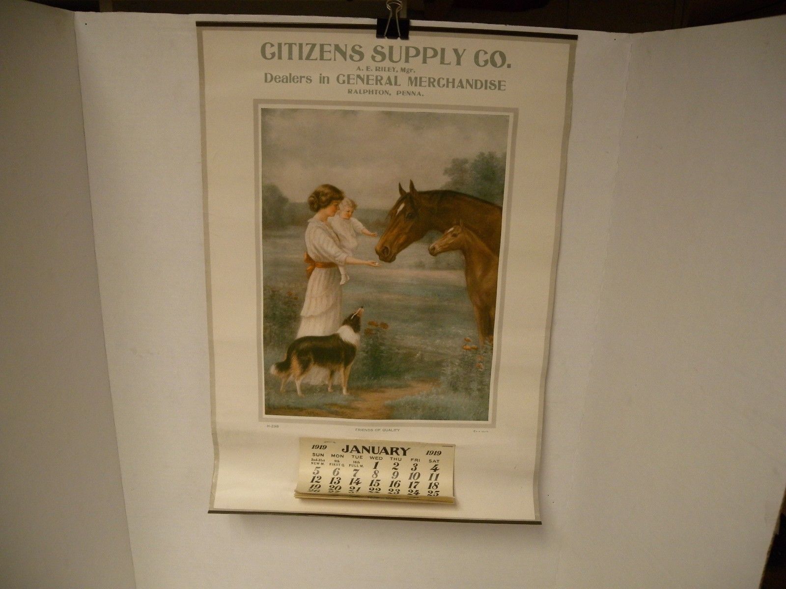 Title (ebay affiliate link): Antique Advertising General Store Calendar 1919, "Citizens Supply" RALPHTON, PA.