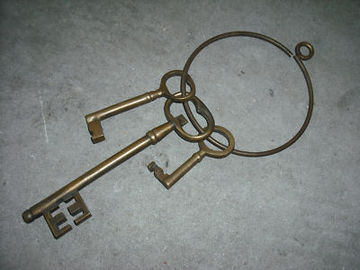 Large Size Ring & 3 Skeleton Keys Giant 7 1/2 Inch Key