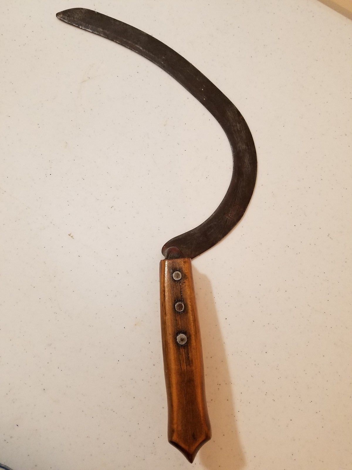 Title (ebay affiliate link): Vintage Keen Kutter Sickle Scythe with wooden handle