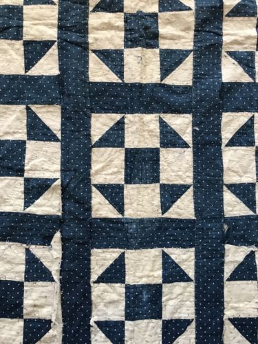 Title (ebay affiliate link): Old Antique Handmade Hand Sewn Blue Calico Quilt Textile AAFA