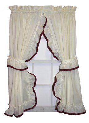 Title (ebay affiliate link): Wine Primitive Ruffled Country Curtains 72" Burgundy Trim Lucy Farmhouse Decor