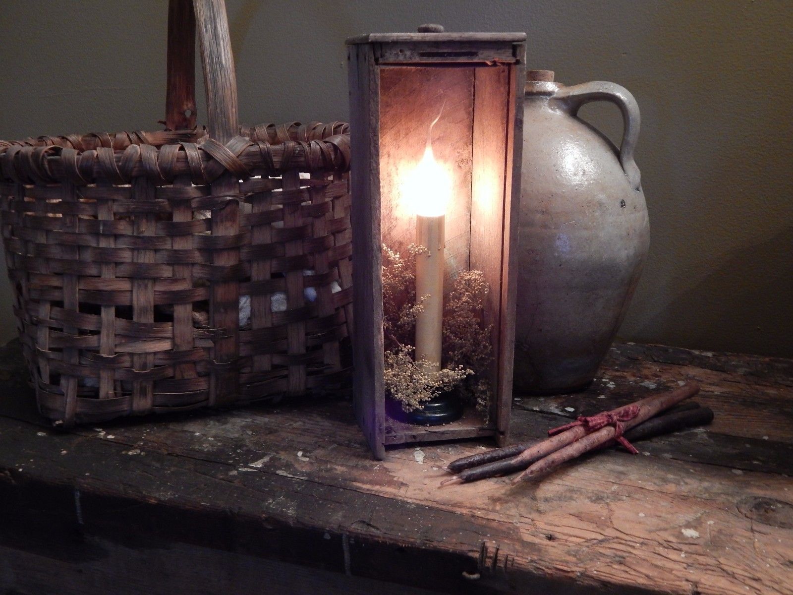 Title (ebay affiliate link): Primitive Sewing Drawer Converted into a Candle Light *Sweet Annie* tucked in