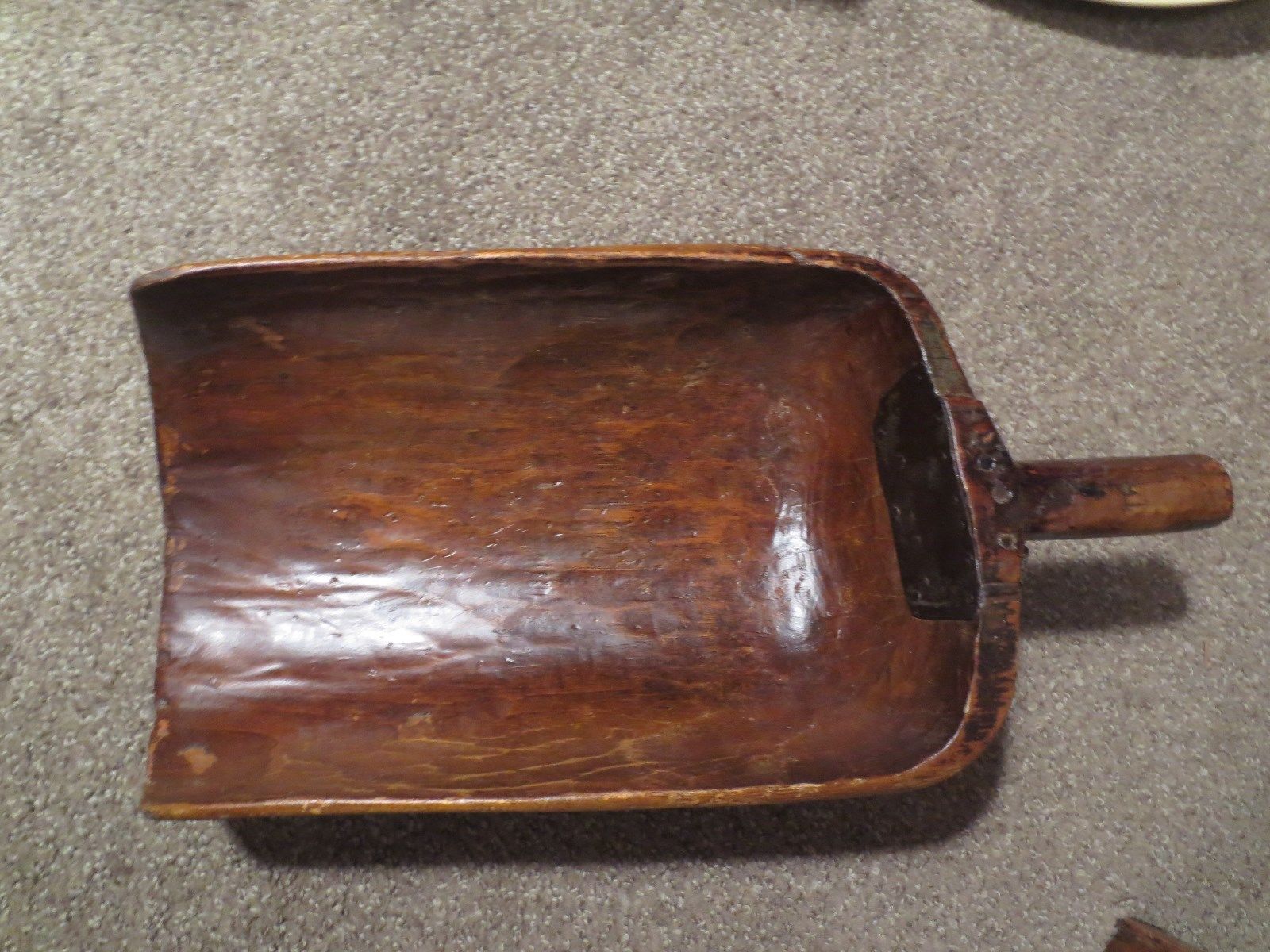 Large Primitive Rustic Antique Wooden Rice Grain Scoop Farm Hand Hewn Carved