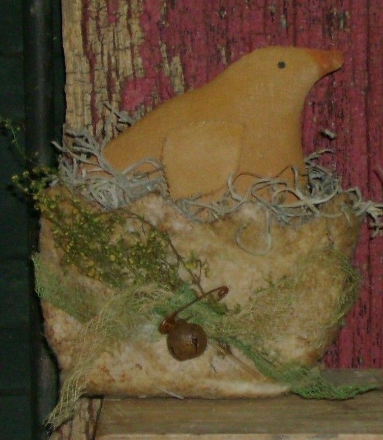 Primitive Spring Little 5" Easter Chick in Egg Ornie Doll ~ Ro''s Cluttered Attic
